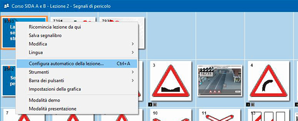 Entrare nella lezione da svolgere e con il tasto destro scegliere la funzione di "configura automatico della lezione"