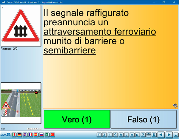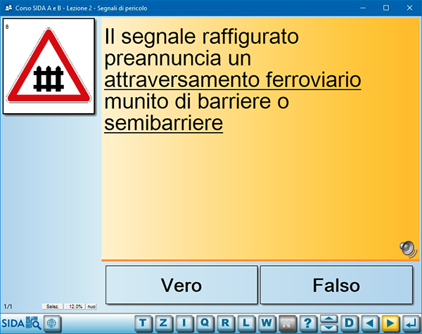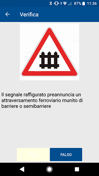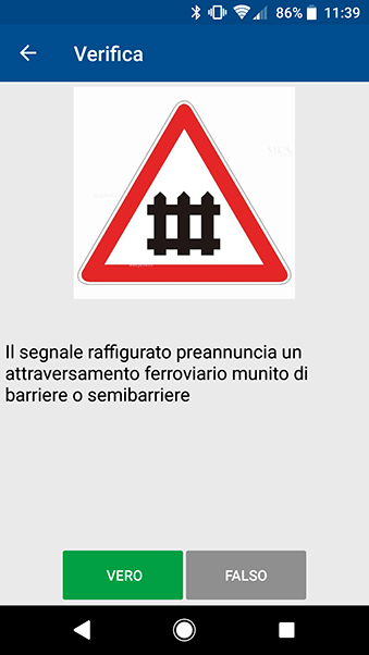 Ricordiamo che nella modalità di aula interattiva, la risposta ESATTA viene indicata in verde (cioè, se la risposta esatta al quiz è FALSO, il tasto con la scritta FALSO verrà indicato in verde. Vuol dire che il candidato ha risposto correttamente alla risposta, che era falsa).