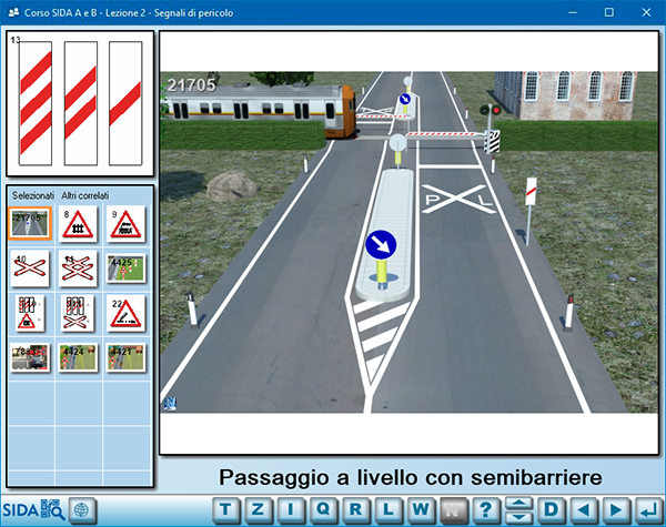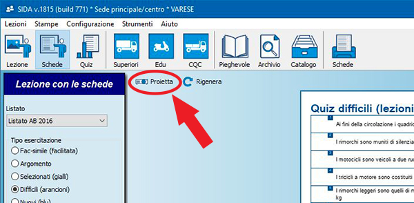 Una interessante applicazione della funzione "Schede" è quella che consente, a partire dalla proiezione di un quiz, di visualizzare tutte le immagini inserite in SIDA (quindi anche le immagini personalizzate dell'autoscuola) correlate all'immagine abbinata al quiz.
